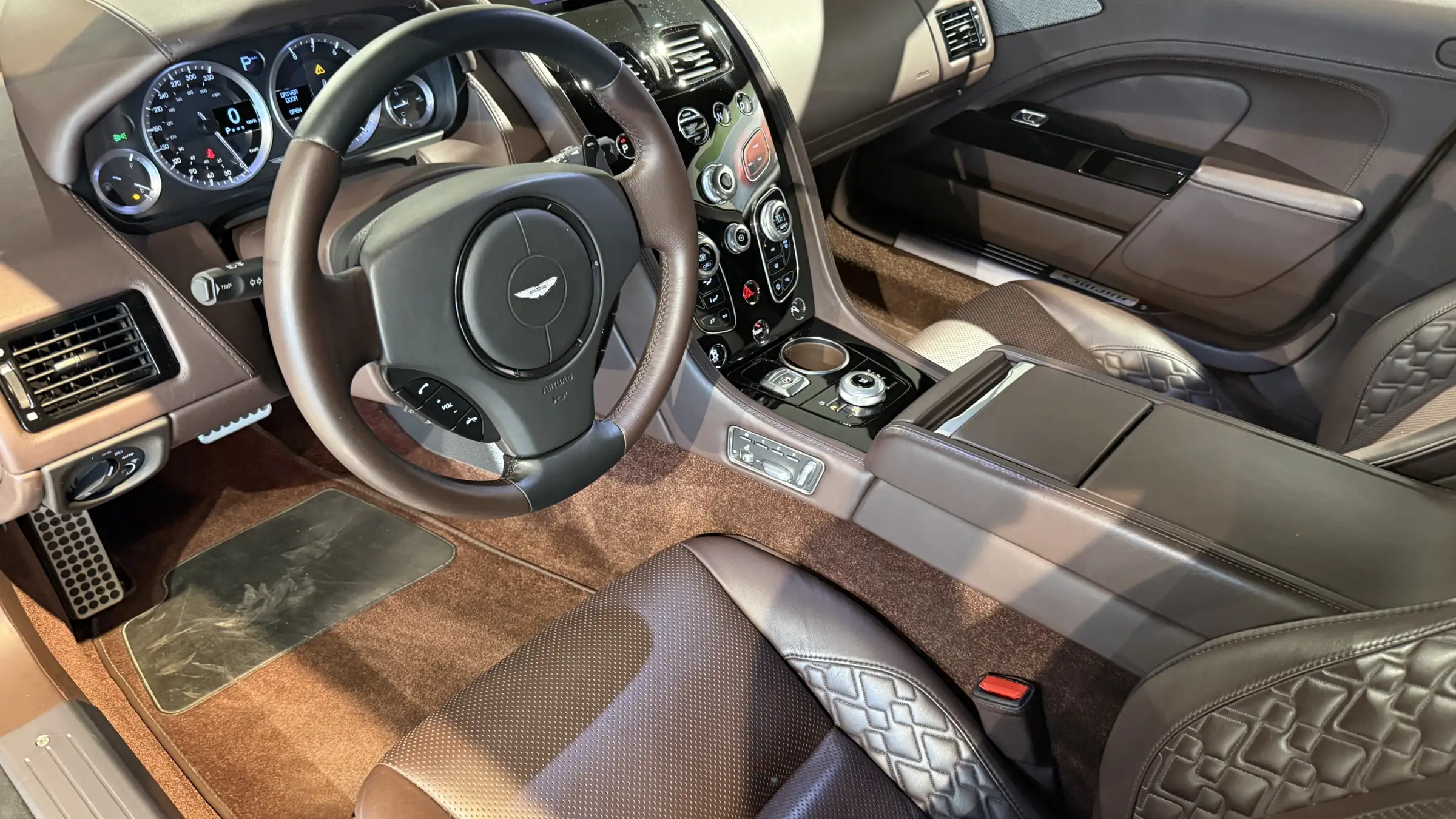 Dette eksemplaret er produsert i den sjeldne og sofistikerte fargekombinasjonen Marron Black med Bitter Chocolate skinninteriør. Skinninteriøret er håndsydd med Quilting, med Bitter Chocolate Alcantara og skinn taktrekk. Teppene er også i Bitter Chocolate med skinnkanter.