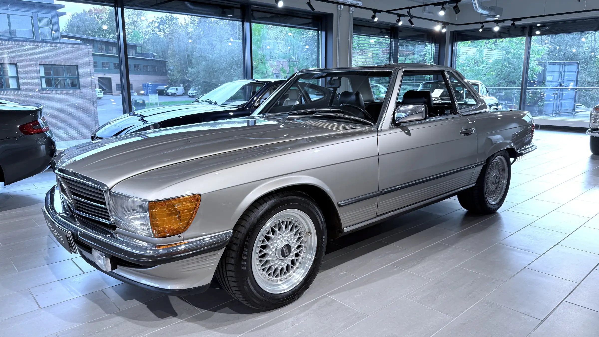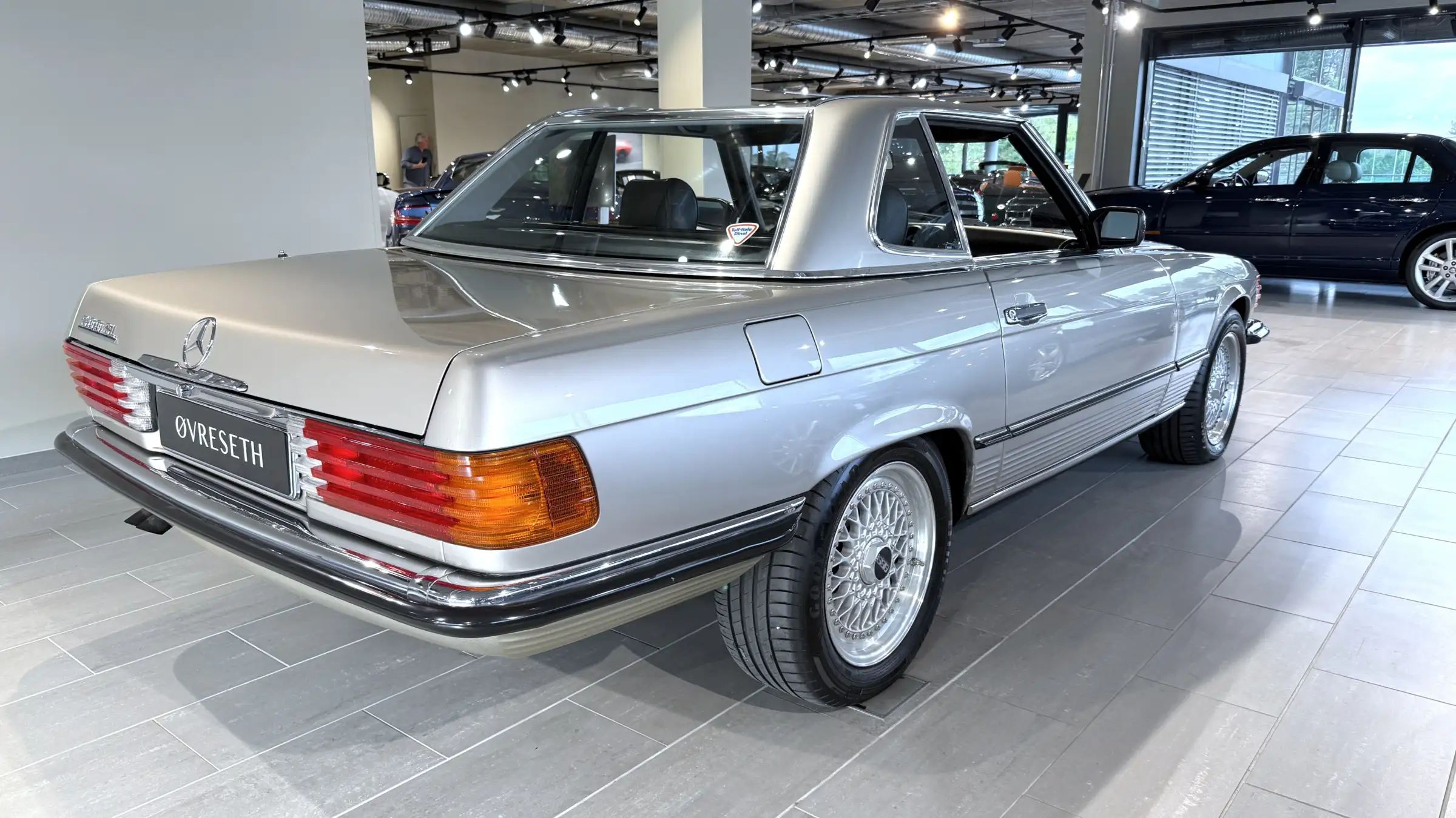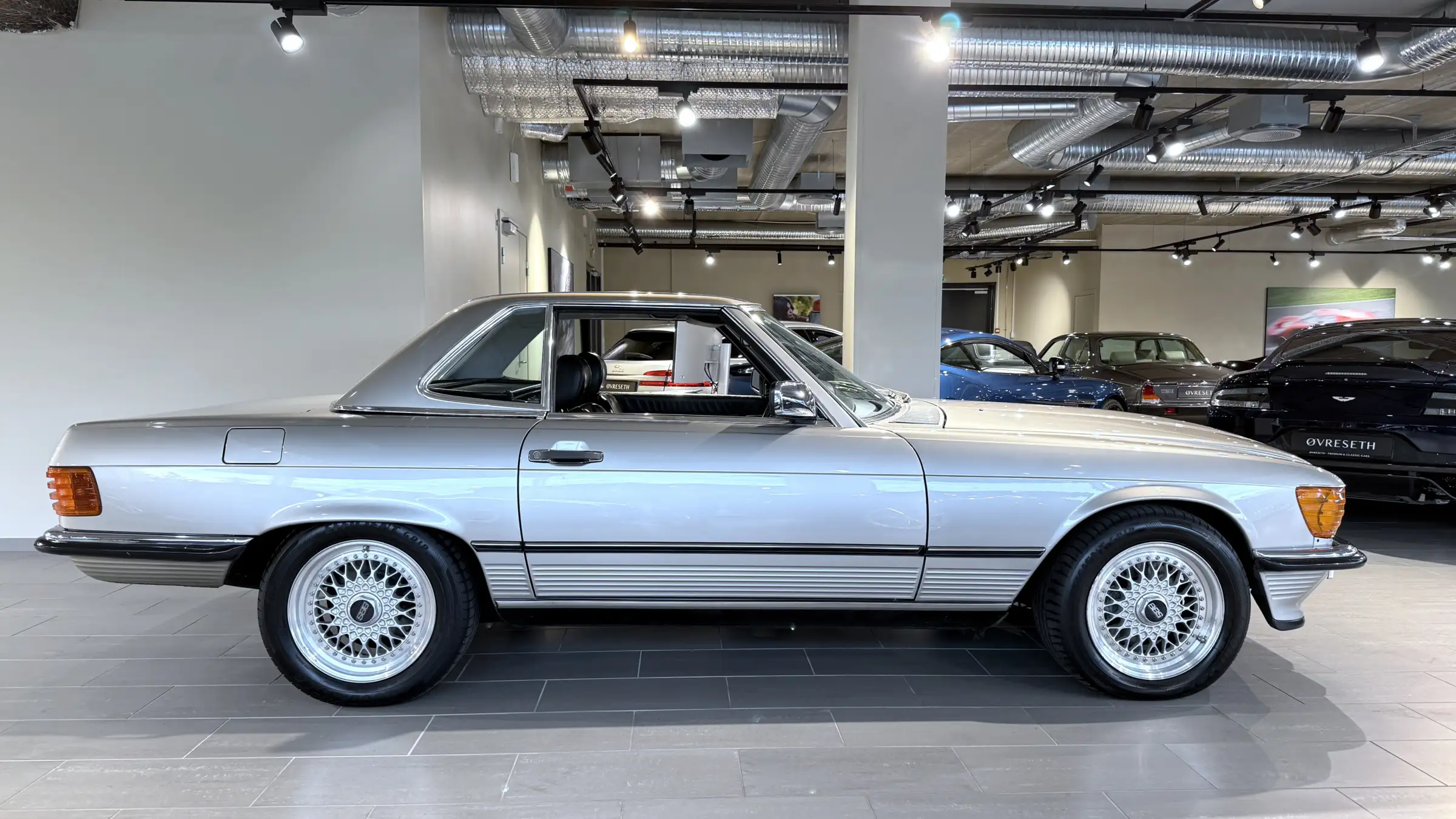 I den elegante og populære lakkfargen Rauchsilber, kommer linjene ekstra godt frem og med de tidsriktige kostbare BBS felgene ser den veldig bra ut.